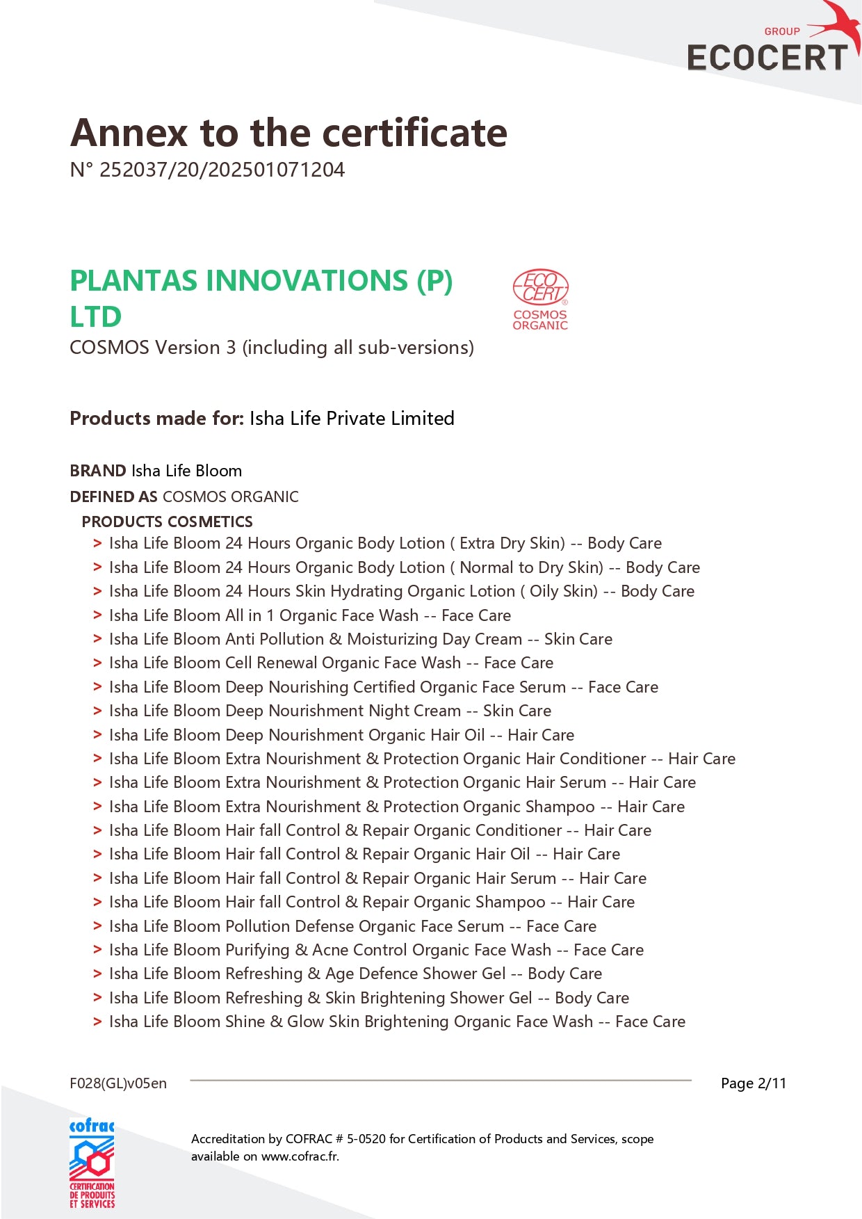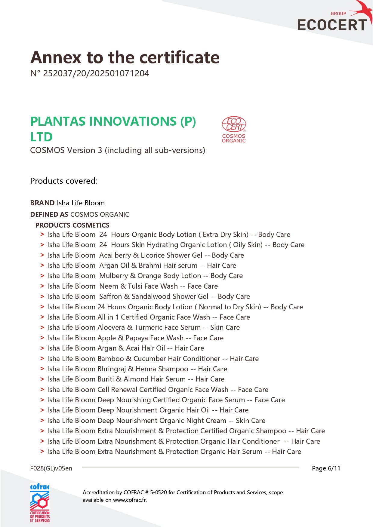 COSMOS certification allows your organic or natural cosmetics to be commercialized worldwide. ECOCERT is an organic certification organization, founded in France in 1991. It is based in Europe but conducts inspections in over 80 countries, making it one of the largest operations of its kind in the world. No other brand in India provides it's consumers with a complete range of COSMOS V3.1 Certified product range. Hence Plantas is the First of it's kind to provide a holistic organic and natural skin care & haircare solution to all their customers.